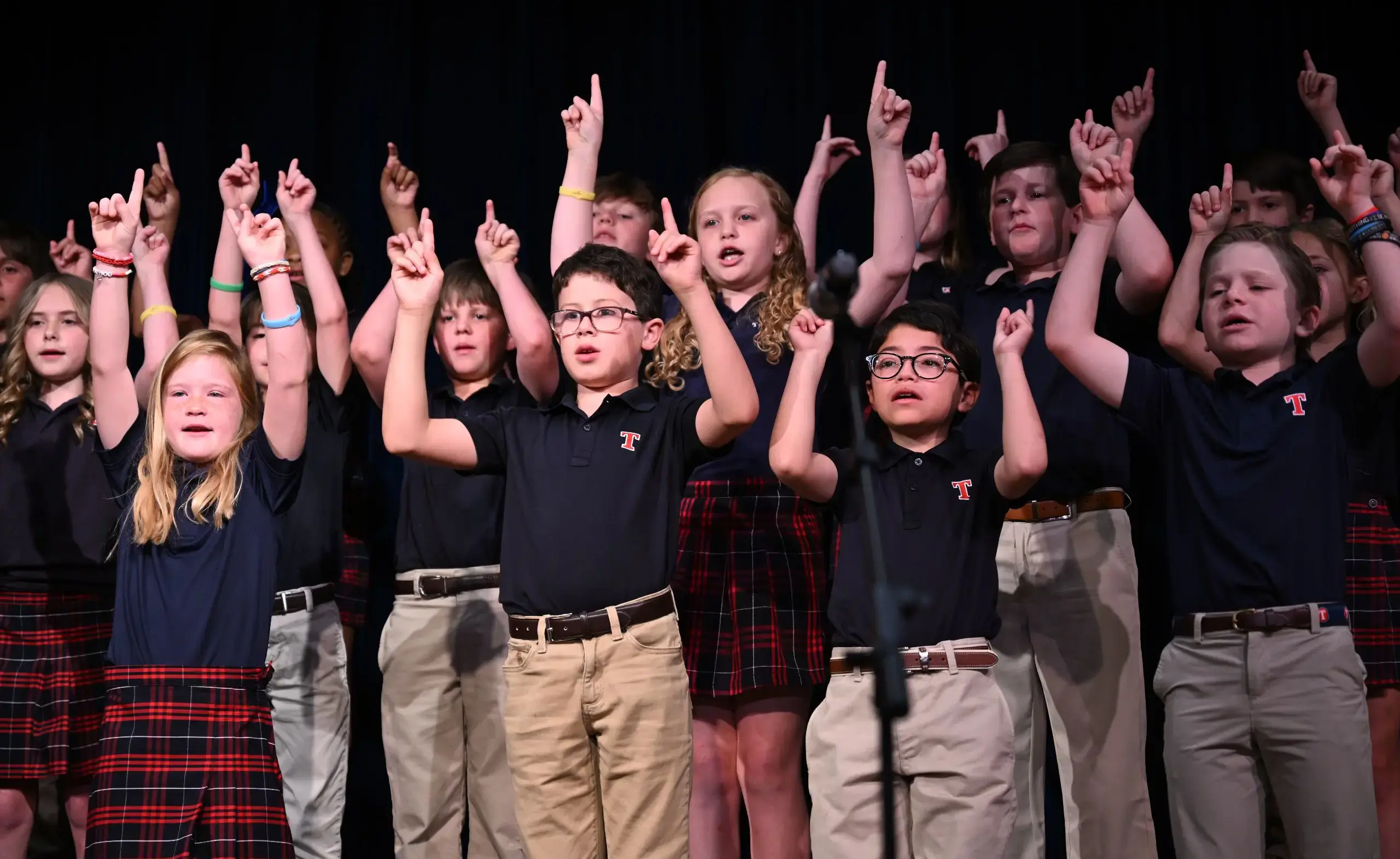 In Middle and Upper School, students can participate in Middle School Choir, Show Choir, and the auditioned ensemble, Voices of Trinity. Each group prepares music for performances throughout the year, while also developing essential skills such as vocal technique, sight-singing, ear training, and music literacy.
